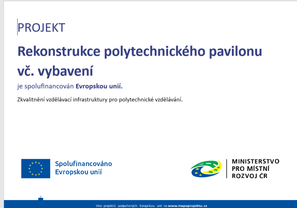 Rekonstrukce polytechnického pavilonu autor: barbora | Led 17, 2025 | Aktuality škola Dne 12.9. 2024 byl na naší škole otevřen nově zrekonstruovaný polytechnický pavilon, kde se nachází tři učebny.